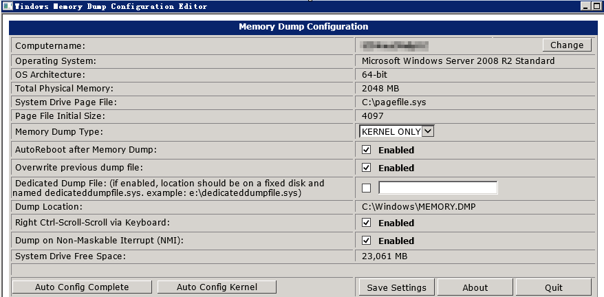 Windows实例默认没有开启内核转储(Kernel Memory Dump)。在某些特殊情况下,比如蓝屏、卡死、宕机、黑屏等,需要借助Kernel Memory Dump才能更快的定位问题原因,进一步进行针对性的处理。可通过以下两种方法配置,在微软官方KB都有提到。