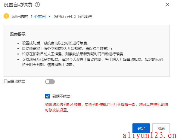 需要注意的是,取消自动续费后如果当前服务器有优惠则不再享受;在服务器到期前我们需要提前把自己服务器资料备份好,防止到期后数据丢失,以上就是关于阿里云服务器怎么关闭自动续费的方法,希望对你有所帮助;