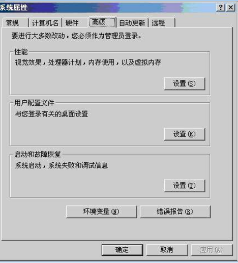 方法是右键单击 我的电脑 > 属性 > 高级 选项卡。